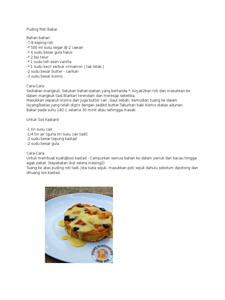 Related : Resepi Puding Roti Bakar Sos Kastard : Bahan resepi puding roti bakar sos kastard..