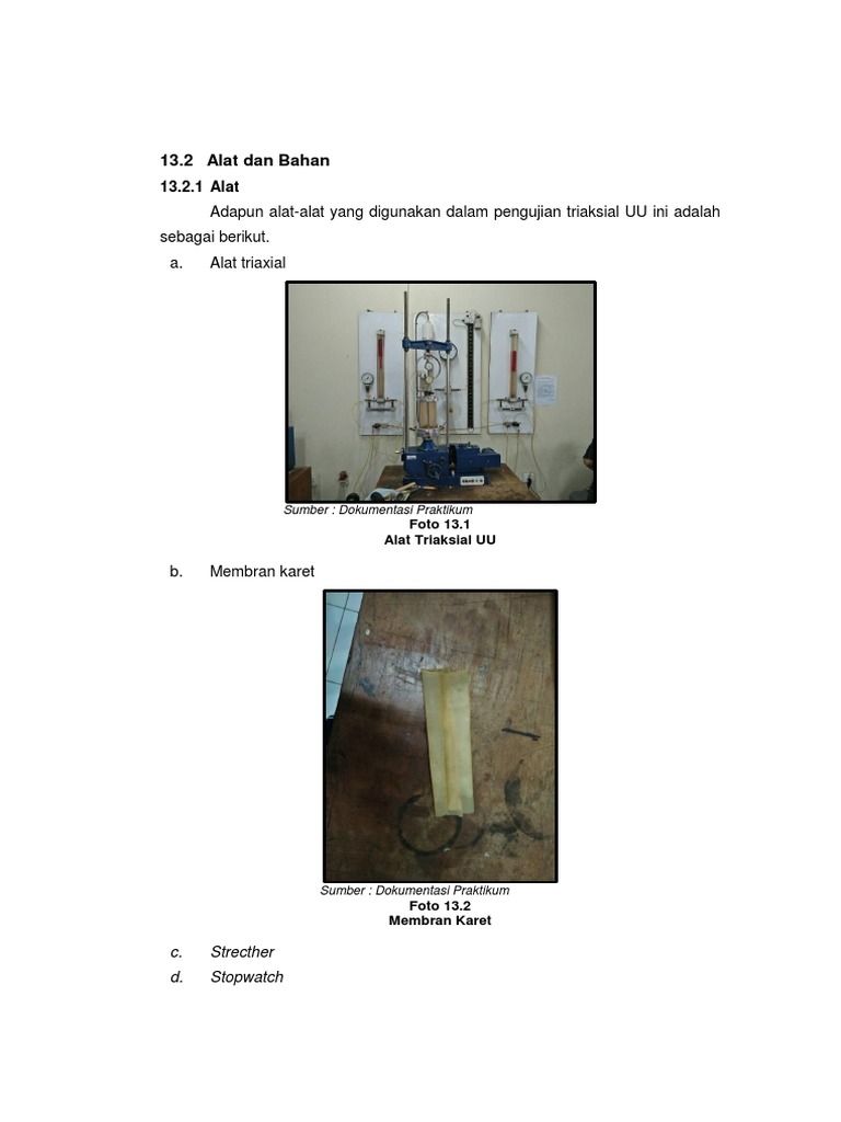 A triaxial shear test is a common method to measure the mechanical properties of many deformable solids, especially soil (e.g., sand, clay) and rock, and other granular materials or powders. Based on the triaxial test data and the binary medium model, a strength criterion considering strength evolution mechanism is proposed and the relevant jianwen ding, xusong feng, yupeng cao, sen qian, feng ji, consolidated undrained triaxial compression tests and strength criterion of. Saturation of sample (check of b confining pressure. The normal size of the sample will be 76mm x 38mm & 100mm x 50mm. The tests are commonly abbreviated to ciu (consolidated isotropic undrained) or cau (consolidated anisotropic undrained). The consolidated isotropic undrained triaxial test is the most common type of triaxial test. The saturated specimen is subjected to confining fluid pressure in a triaxial cell. In both tests the samples are sheared with no drainage permitted ie undrained so why would the deviator stresses increase in the cu test the uu provided an estimate of short term shear strength at the existing condition. Load the specimen until ε1 = 15%. It has 5 deformation sensors (4 radial. Triaxial test on sand you will conduct a cd test on sand. Quired, nonporous plates can be used instead of porous stones at the top and bottom of the soil mechanics laboratory manual 135. There are several variations on the test.